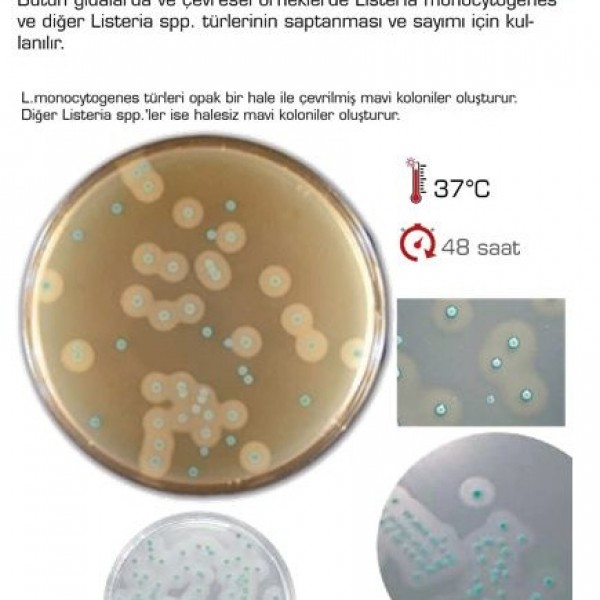 In whole foods and environmental samples, Listeria monocytogenes and other Listeria spp. used for the identification and enumeration of species.