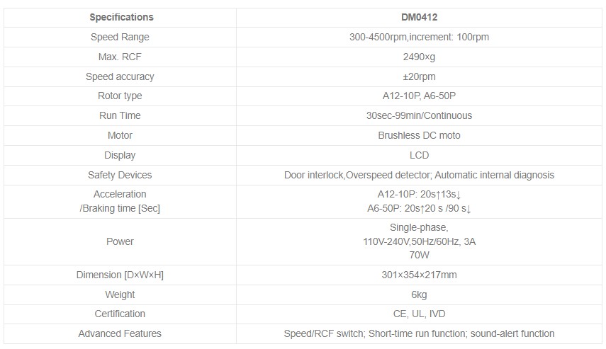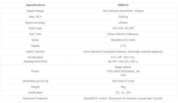| 9034002122 | DM0412 | Low-speed Centrifuge, including A12-10P rotor and both adapter A10P15&A10P15 plug(package contain in the box) | Euro plug, 220-240V/50Hz/60Hz |