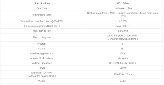 | 5062102100 | HC110-Pro | LCD digital Thermo Mix with heating, cooling,with 1pcs heating block for free (select a size in the ) | USA plug,100V-120V/50Hz/60Hz |