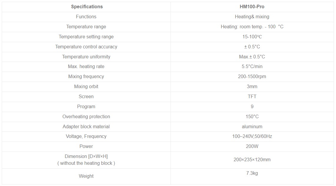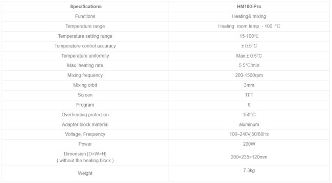 | 5062104100 | HM100-Pro | LCD digital Thermo Mix with heating, mixing,with 1pcs heating block for free (select a size) | USA plug,100V-120V/50Hz/60Hz |