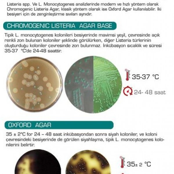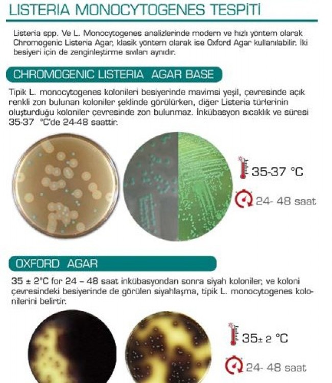 Chromogenic Listeria Agar can be used, while Oxford Agar can be used as the classical method.