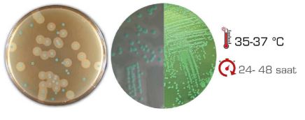 35 +-2 C for 24 — Black colonies, and colony after 48 hours of incubation