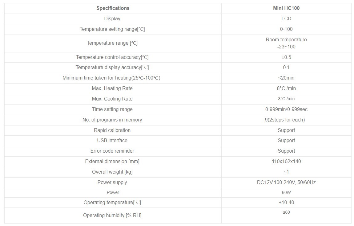 | 5042102111 | MiniHC100 | LCD digital mini dry bath,with heating and cooling, one 1 pcs heating block for free (select a size below) | USA plug,100V-120V/50Hz/60Hz |