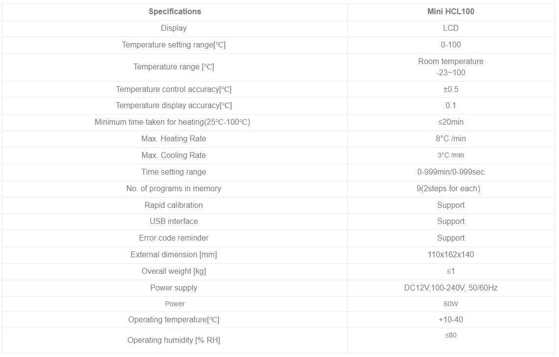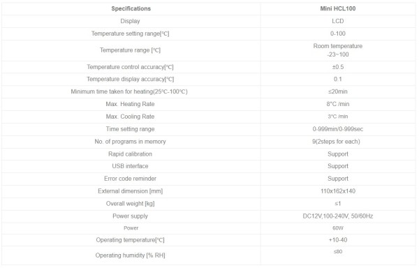 | 5042132111 | MiniHCL100 | LCD digital mini dry bath,with heating and cooling and hot lid, one 1 pcs heating block for free (select a size below) | USA plug,100V-120V/50Hz/60Hz |