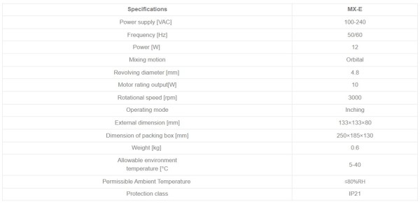 | 8031211000 | MX-E | Vortex Mixer (Fixed speed) | USA plug,100V-220V/50Hz/60Hz |