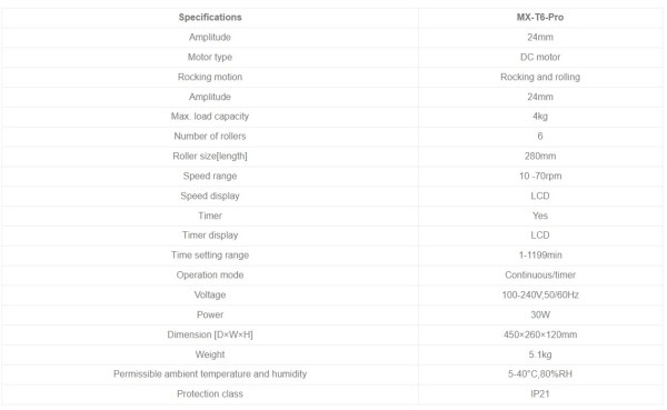 | 8031312100 | MX-T6-Pro | LCD Digital Tube Roller,variable speed,6 rollers | USA plug,100V-220V/50Hz/60Hz |