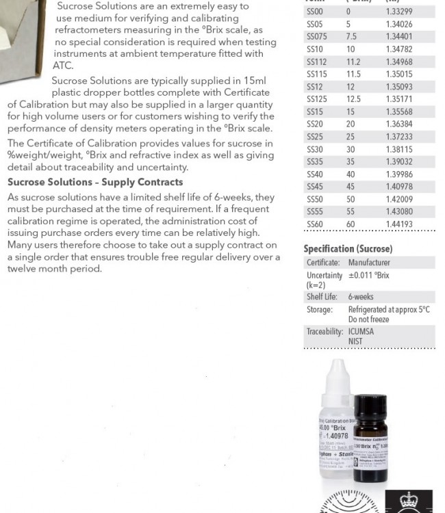 UKAS (ISO17025) certified, 6 weeks expiry, ICUMSA/NIST traceability