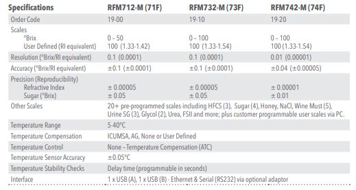 Measuring range: 0 – 95 °Brix, Resolution: 0.1 °Brix