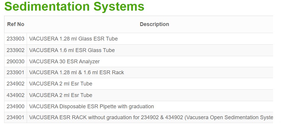 434902 VACUSERA 2 ml Esr Tube 2 13x75 4NC Sodium Citrate 3.2% 12 months Transparent 100/1200
