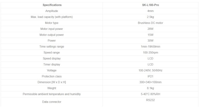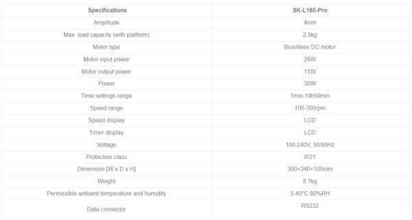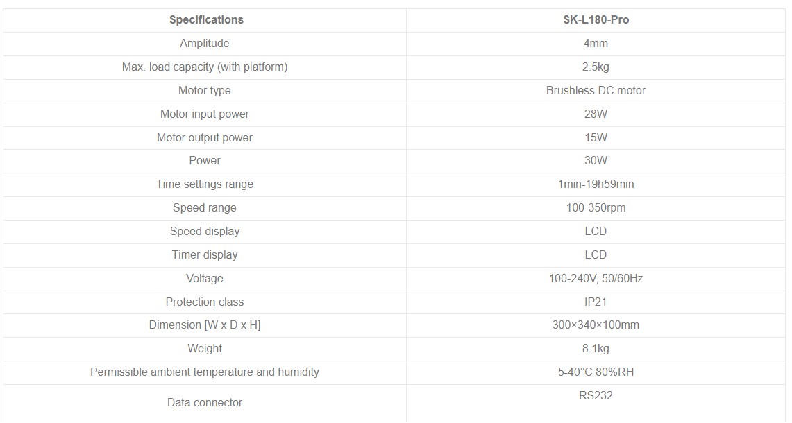 | 8032110100 | SK-L180-Pro | Digital Linear Shaker (2.5Kg) with SK 180.1 Universal attachment(package seperately) | USA plug,100V-220V/50Hz/60Hz |
