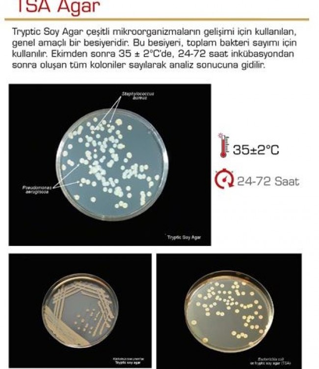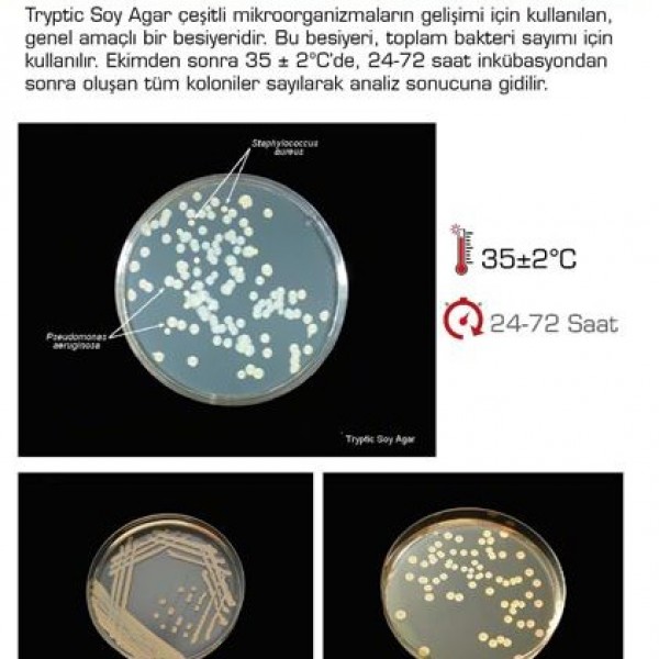 Tryptic Soy Agar is a general purpose medium used for the growth of various microorganisms.