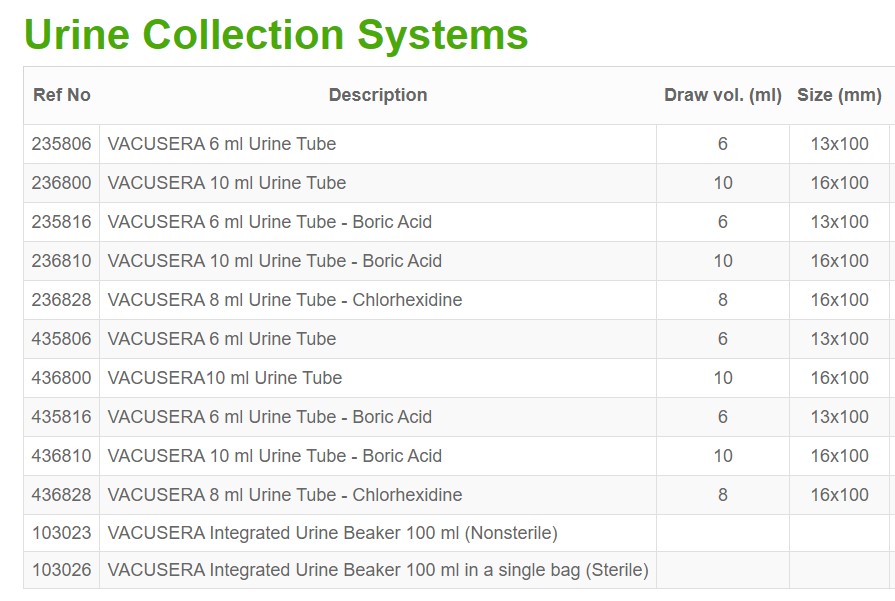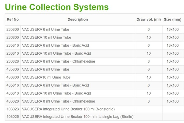235816 VACUSERA 6 ml Urine Tube - Boric Acid 6 13x100 Boric Acid 18 months Paper 100/1200